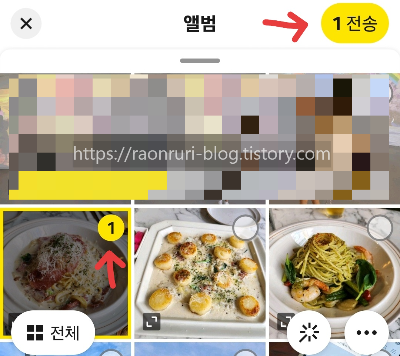 - 오른쪽 위 [선택] 버튼 → 사진 톡톡 눌러 체크