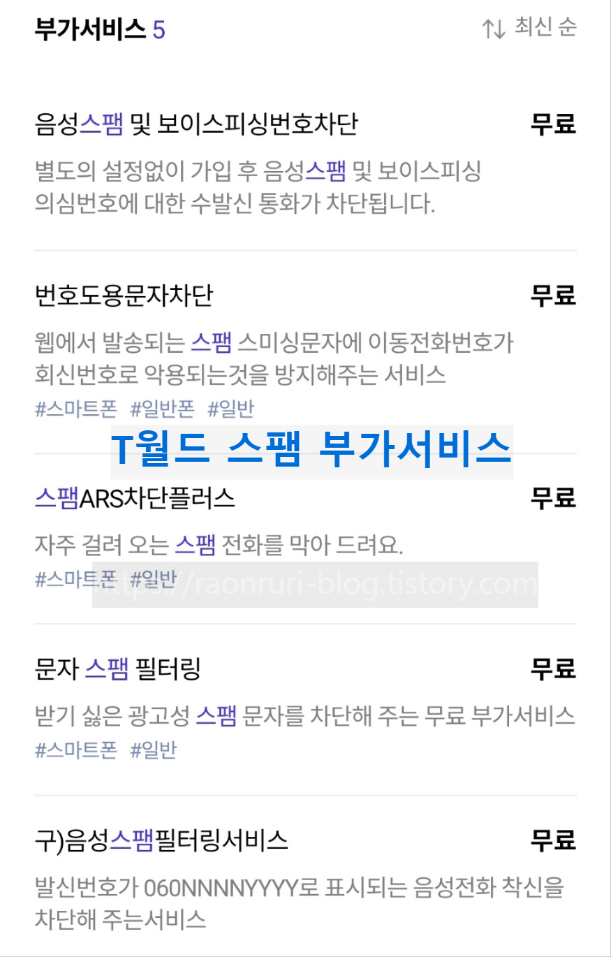- 에이닷(A.) 또는 T월드 앱 실행 → 보안/스팸 차단 메뉴 진입
